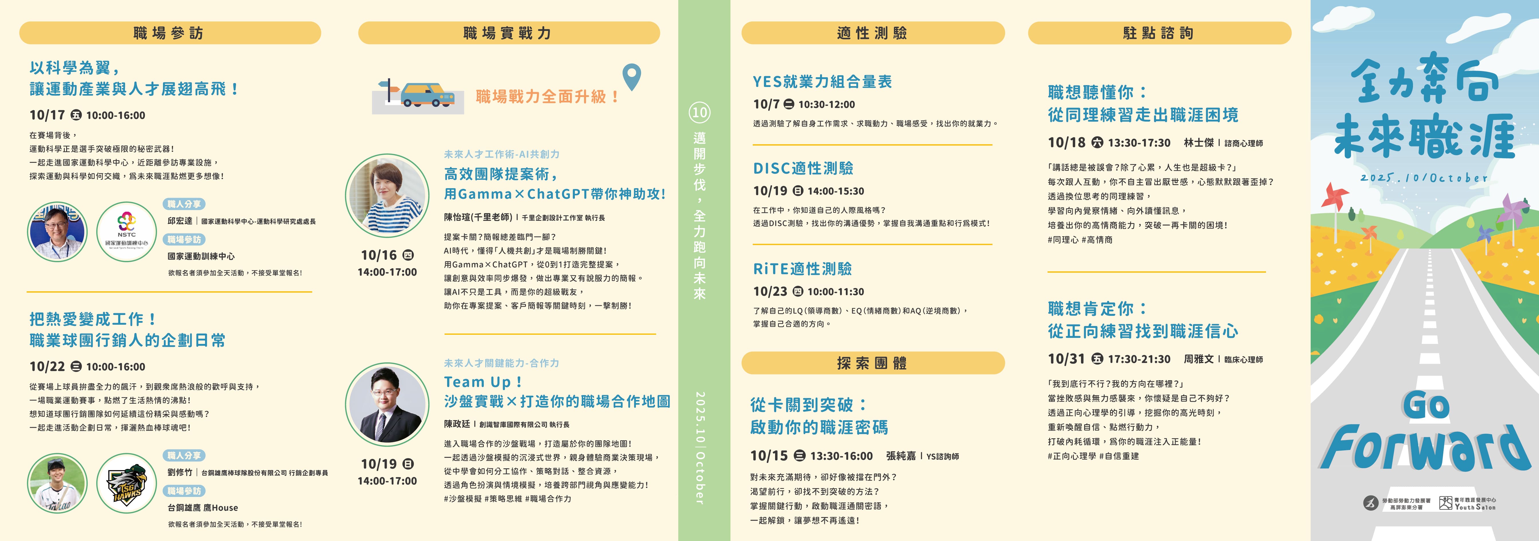 YS 10月職涯活動預告-從正向練習找到職涯信心,職場參訪與測驗YS 10月職涯活動預告-職人講座、職涯教練