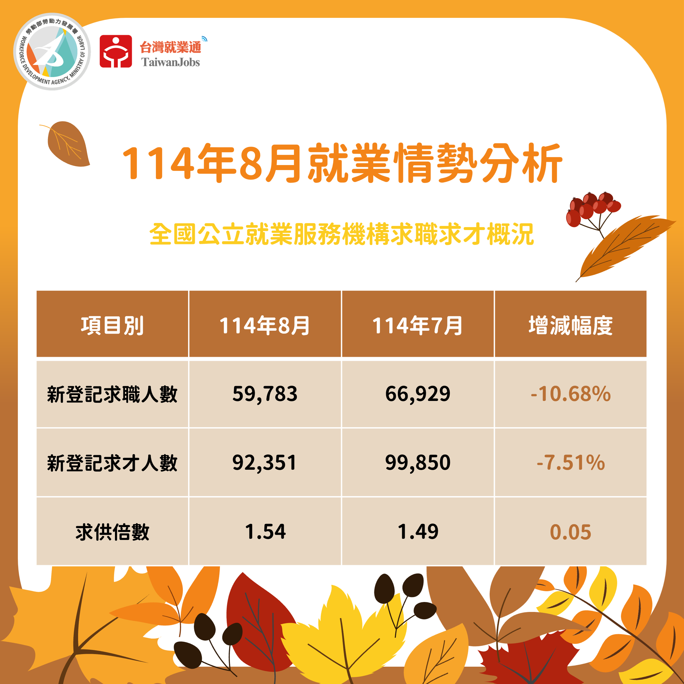 114年8月求職求才概況圖表114年8月新登記求才數行業TOP5圖表114年8月製造業熱門職缺推薦圖114年8月製造業熱門職缺訊息如下,等你...