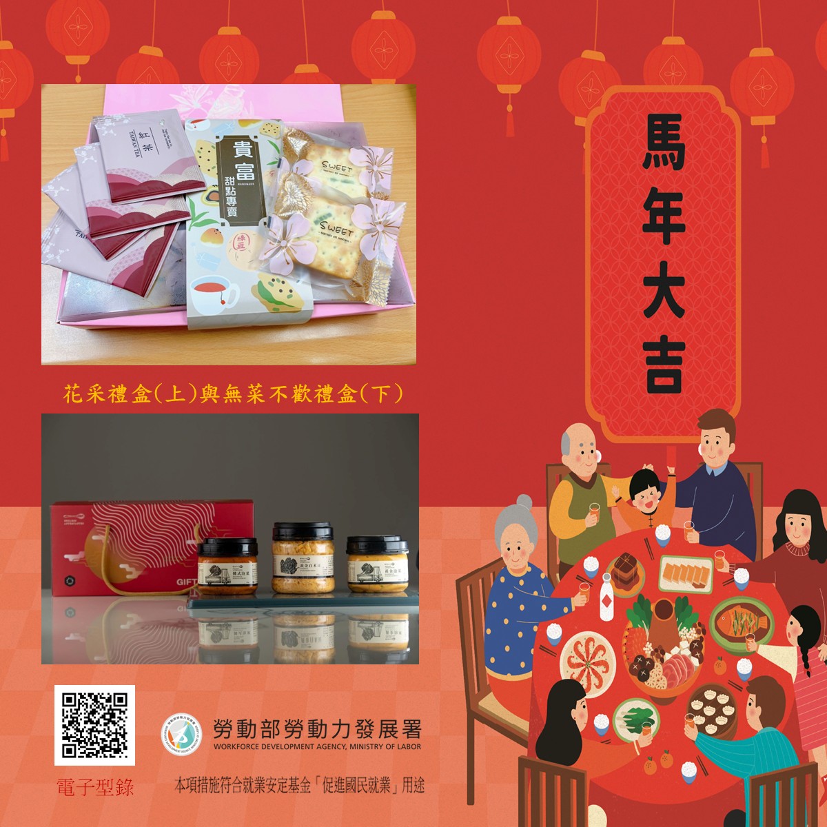 農曆新年將至,為大力協助進用弱勢失業者與微型創業的商家,勞動部已蒐集參與該部所推動「多元培力計畫」及「微型創業鳳凰計畫」商家推出的各類精美年節商品,其中包括商家運用在地食材製作的點心以及有機食材醃製的小菜禮盒等,希望民眾在享受年節假期之際也可以多多支持及品嚐他們用心製作的所有商品。