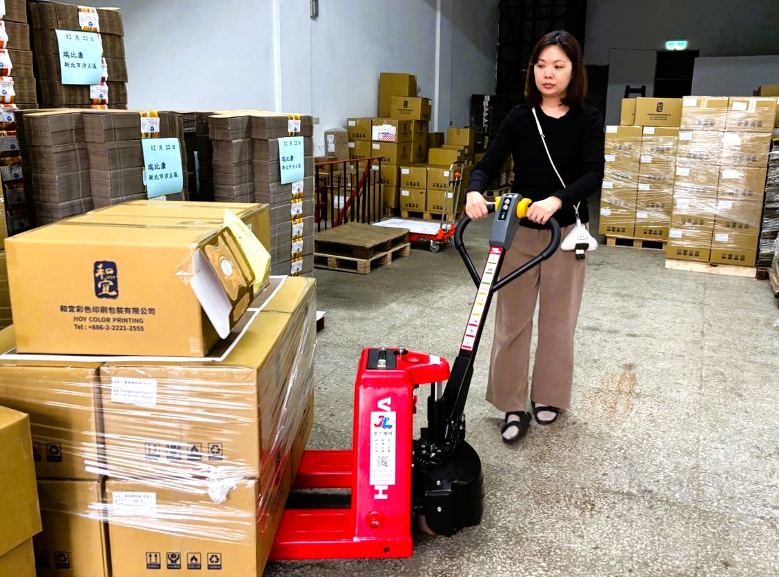 經專家團隊實地訪視評估後,針對丁小姐需長距離搬運及重物上下堆疊等作業特性,協助公司導入「全電動拖板車」及「單叉式油壓升降台車」,有效支援跨廠房搬運與堆疊作業,大幅降低人力推拉、彎腰與提舉需求,不僅提升作業安全,也明顯減輕員工身體負擔。